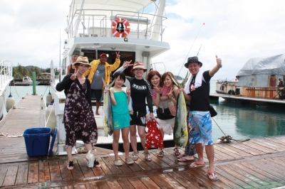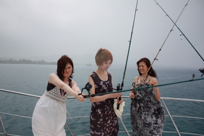 イルカウォッチングの後はデッキからみんなで魚釣りをした。