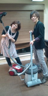 いつもお店が終わったら近藤サンと一緒に掃除機をかけるんですょ~