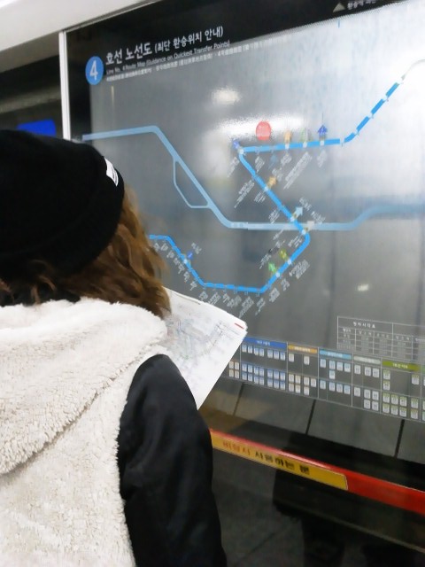 路線図を見るあみちゃん↑↑