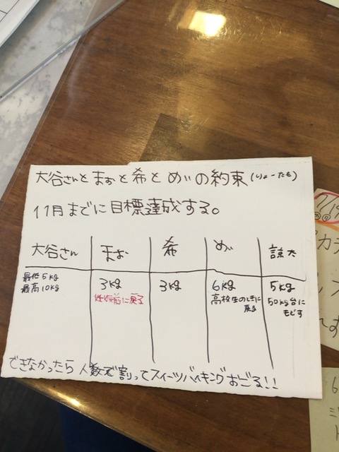 早速グループラインも作り、目標も立てたのでみんなで体重発表