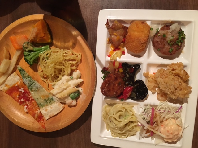 真央ちゃんは最初からデザートを取ってくるし、まあまあ最初から大量に料理を入れてくる