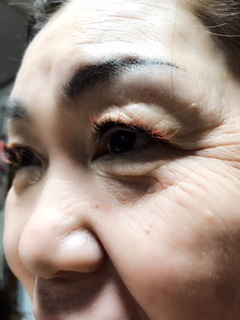 夜につけたので母は気づかず朝メイクをする時に相当びっくりしたらしいです